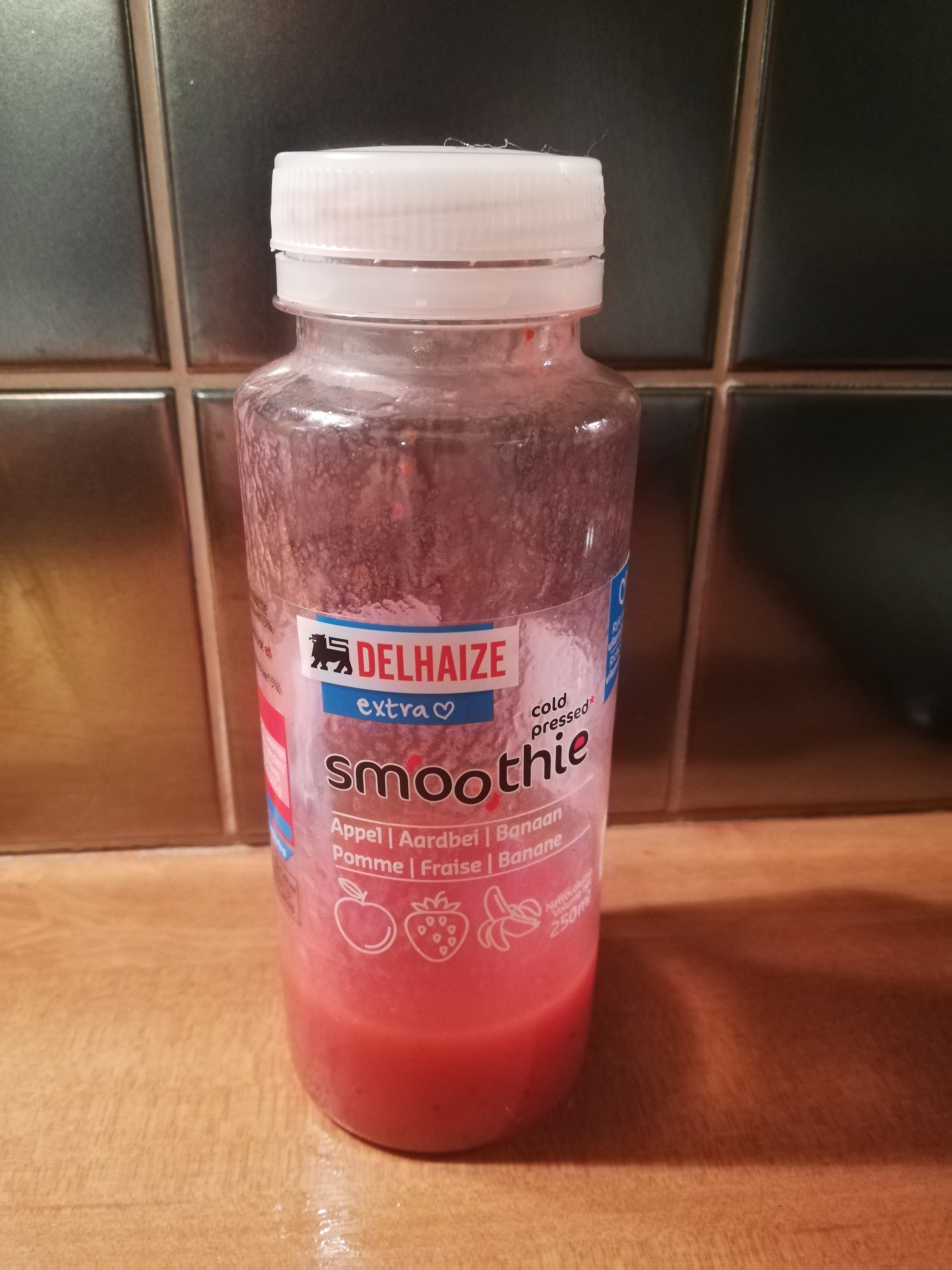 Wednesday evening I don’t eat because I have trampoline training from half past six until half past eight. Mostly I just drink a smoothie. This is my favorite smoothie. In the smoothie there is apple, banana and strawberry. (I forgot to take a picture, that is way the bottle is almost empty) π