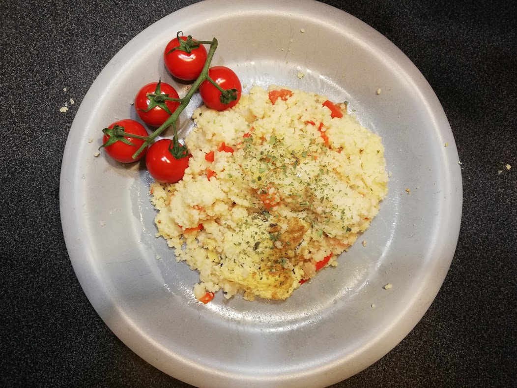 This evening I ate egg with couscous and tomatoes π . I prefer eat a hot mael to eat bread. I really enjoyed this meal.